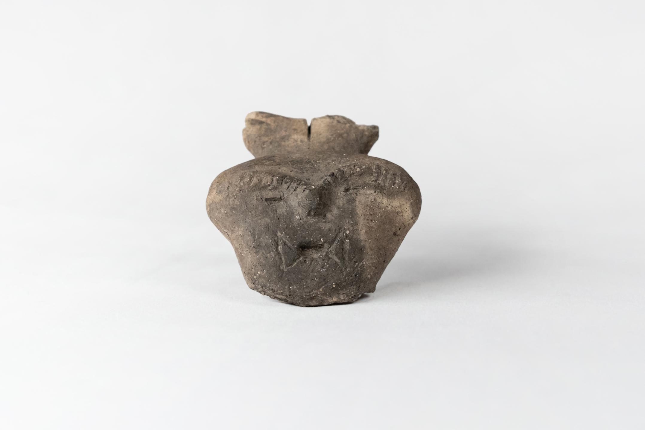 土偶 ページ番号:3489 更新日:2025年9月30日 印刷 大きな字で印刷 前のスライドに移動する 次のスライドに移動する 出土時期 H23(2011)小山崎遺跡第18次調査 時代 縄文時代 遺跡名 小山崎遺跡 高 (6.4)cm 長 幅 6.3cm 厚 径 所蔵 遊佐町埋蔵文化財調査室 備考(文化財指定の有無等