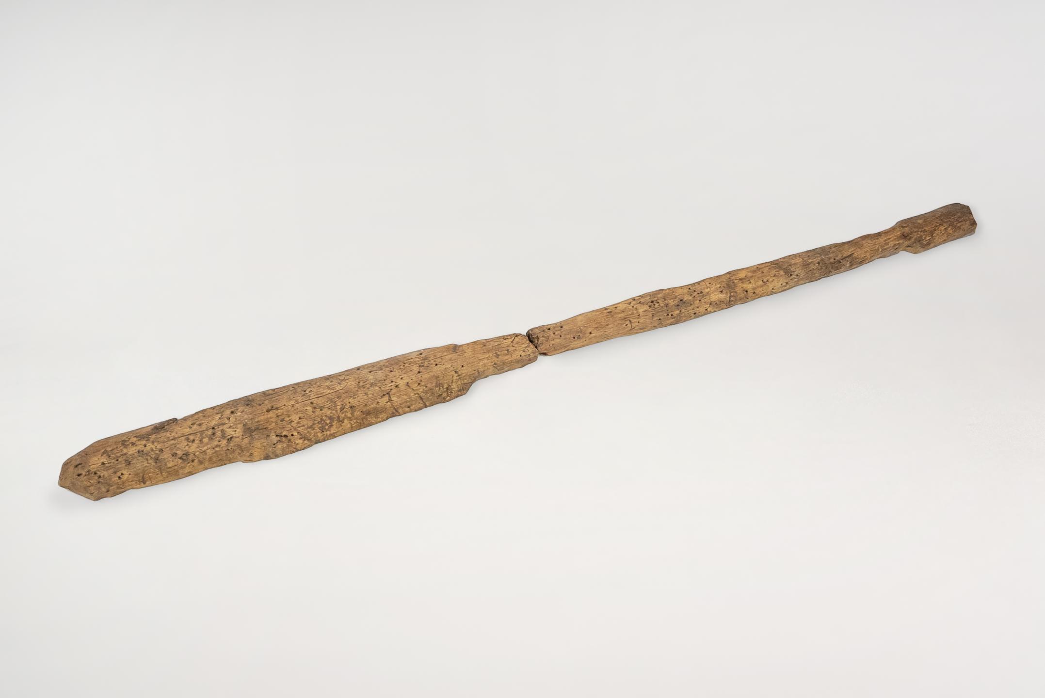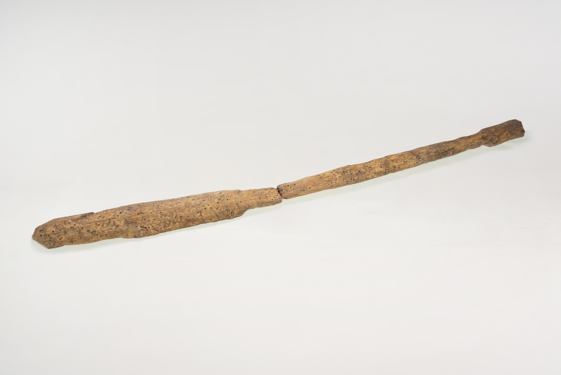 櫂未成品 ページ番号:3490 更新日:2025年9月30日 印刷 大きな字で印刷 前のスライドに移動する 次のスライドに移動する 出土時期 H12(2000)小山崎遺跡第4次調査 時代 縄文時代(後期中葉) 遺跡名 小山崎遺跡 高 長 177.0cm 幅 10.5cm 厚 5.4cm 径 所蔵 遊佐町埋蔵文化財調査室 備考(文化財指定の有無等) 樹種:ツバキ