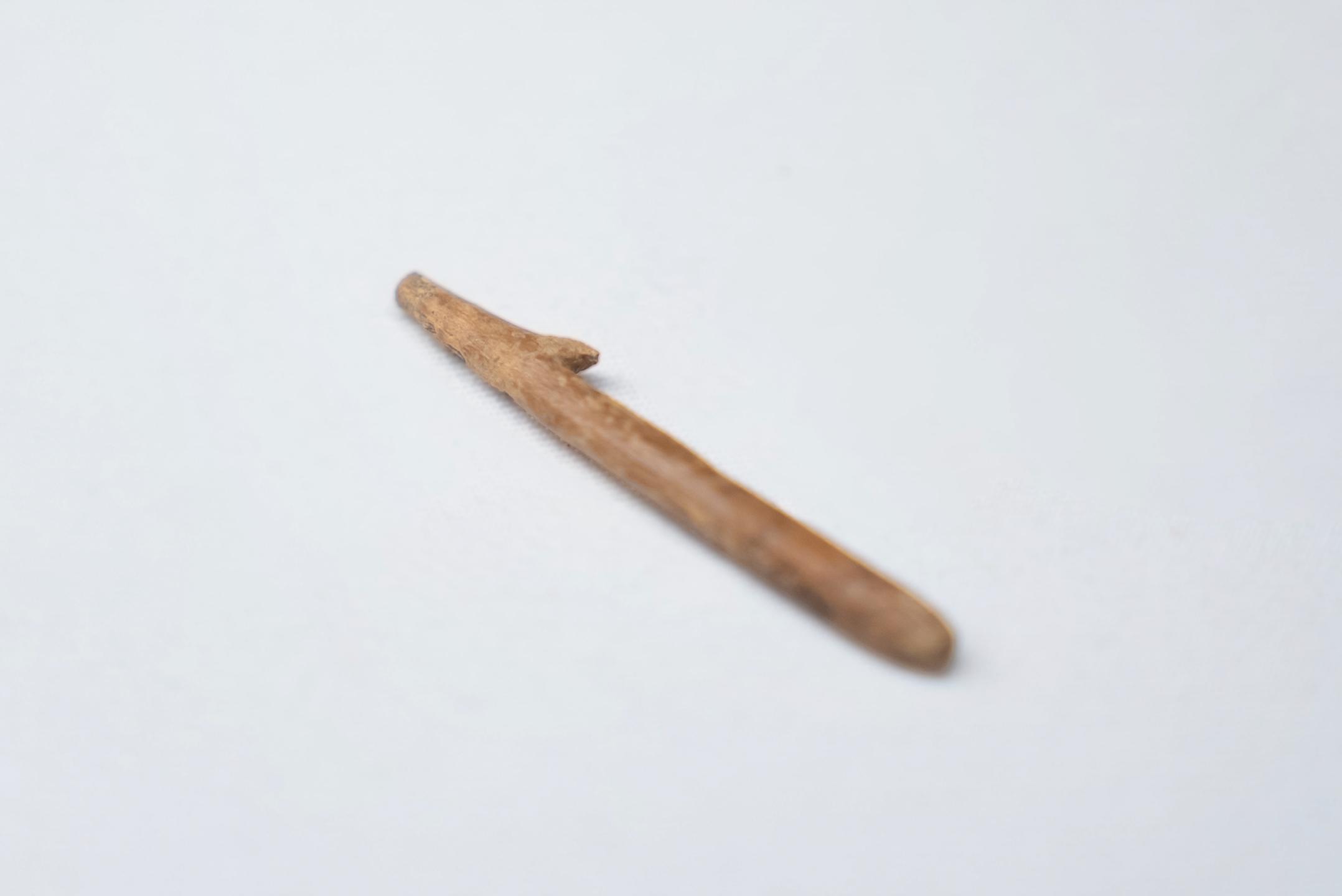 逆刺付刺突具 ページ番号:3493 更新日:2025年9月30日 印刷 大きな字で印刷 前のスライドに移動する 次のスライドに移動する 出土時期 H17(2005)小山崎遺跡第12次調査 時代 縄文時代(後期) 遺跡名 小山崎遺跡 高 長 (3.8)cm 幅 0.5cm 厚 0.3cm 径 所蔵 遊佐町埋蔵文化財調査室 備考(文化財指定の有無等) 種類:イノシシ/ニホンジカ