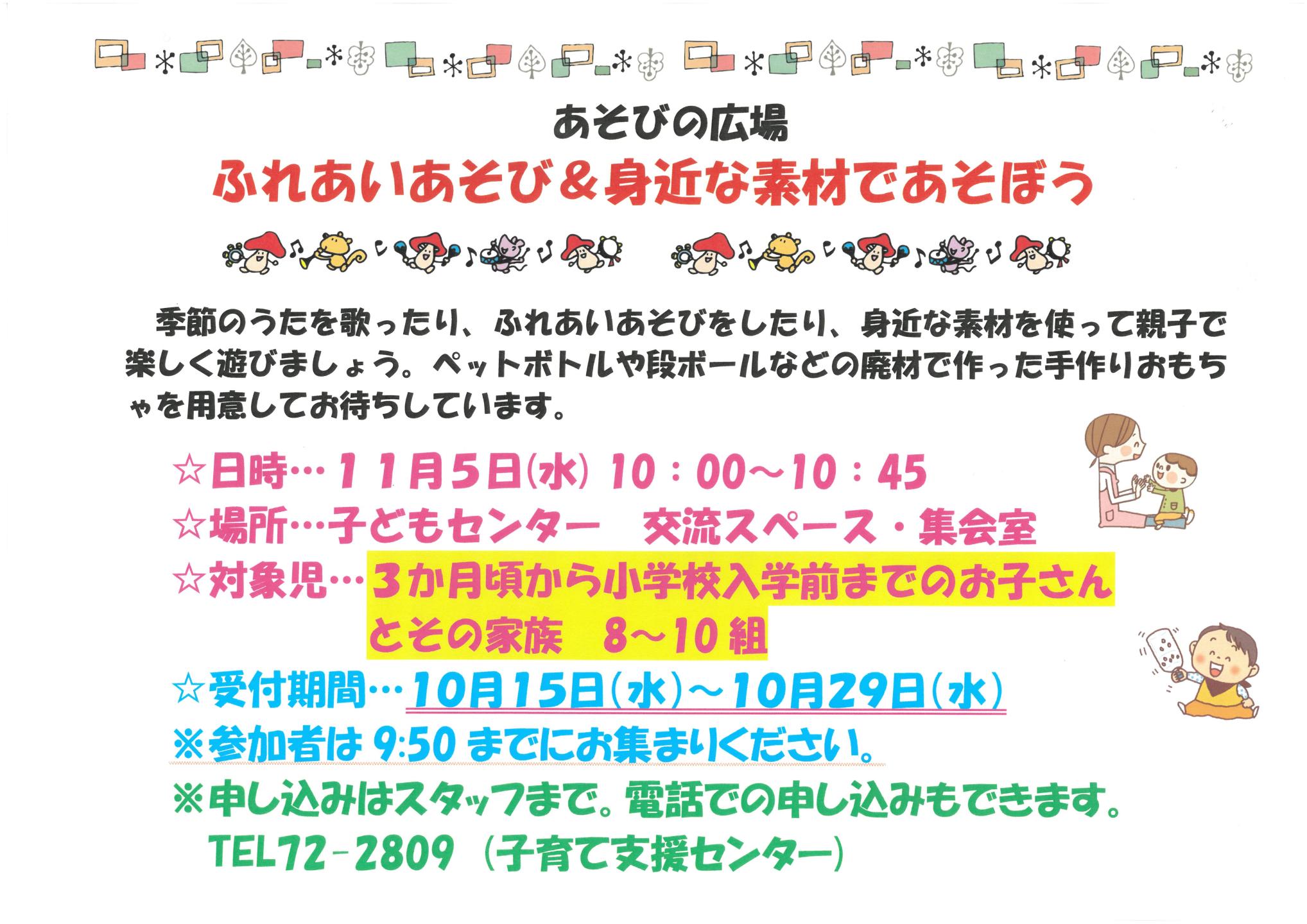 あそびの広場「ふれあいあそび&身近な素材であそぼう」