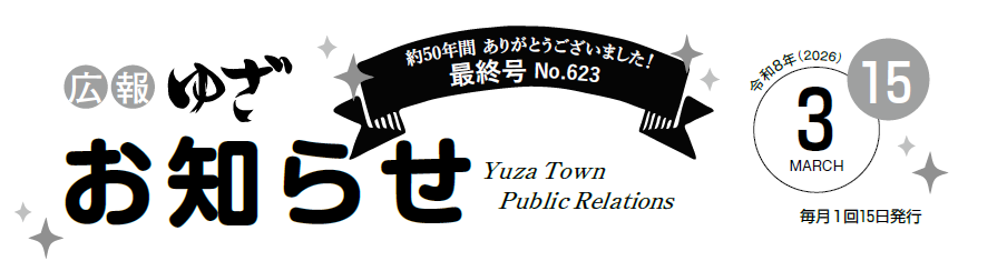 広報ゆざお知らせ号(令和7年度) ページ番号:3070 更新日:2026年2月15日 このページをお気に入りに登録 印刷 大きな字で印刷 2025年度お知らせ号(毎月15日発行) 2026年3月15日号 2026年2月15日号 2026年1月15日号 12月15日号 11月15日号 10月15日号 9月15日号 8月15日号 7月15日号 6月15日号 5月15日号 4月15日号