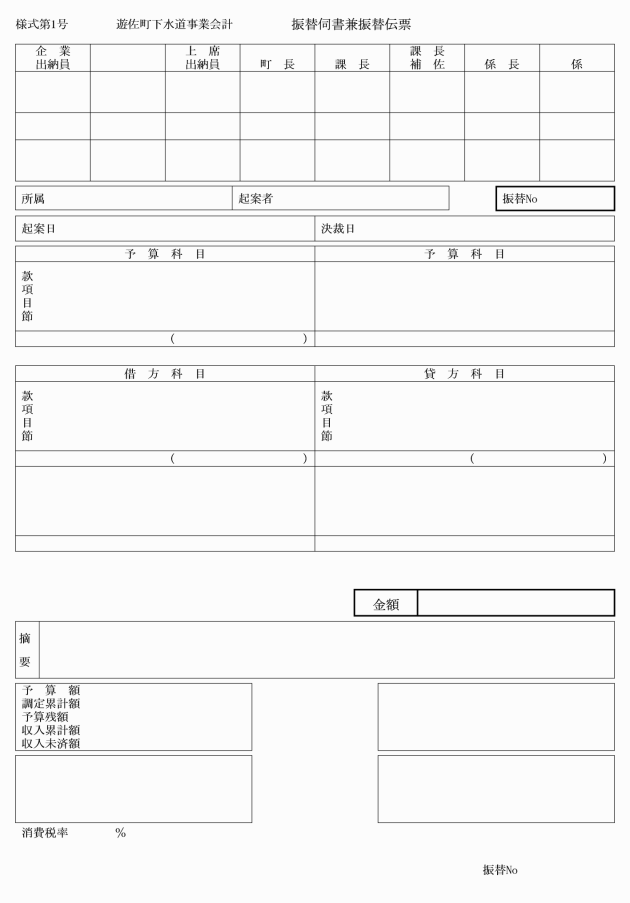 第12条 会計伝票を発行する者は、発行した会計伝票に認印し、証拠書類を添付して町長(地域生活課長の専決事項については課長)の決裁を受けた後、企業出納員に回付しなければならない。